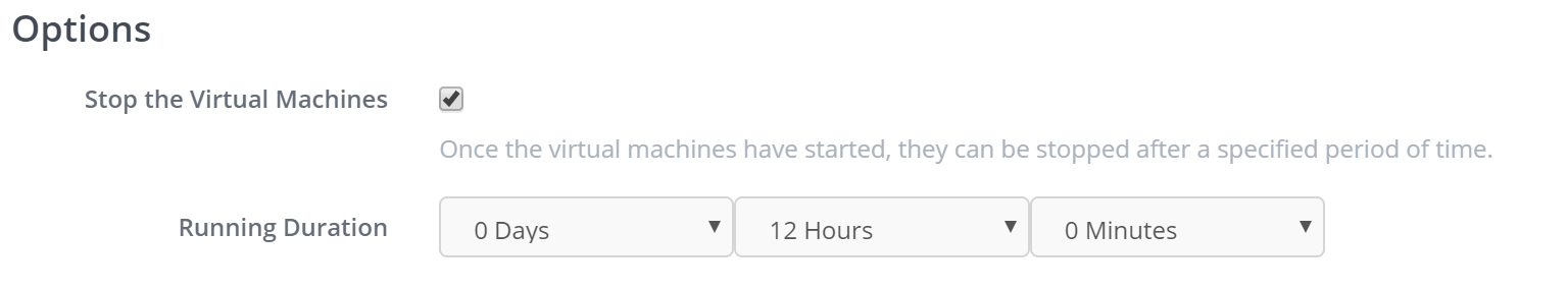 Once your virtual machines are running, they can be stopped after a pre-determined amount of time.