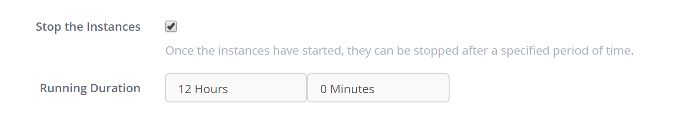 Once your instances are running, they can be stopped after a pre-determined amount of time.